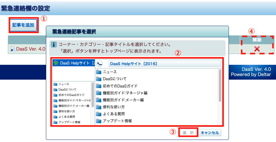 ※複数の緊急連絡記事を表示する場合は【記事を追加】ボタンを繰り返します。