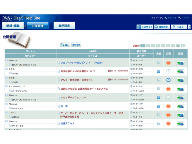 記事の公開・非公開ができます。タイマー機能で設定した任意の日付に公開・非公開ができます。※記事の承認・変更依頼など、複数のユーザーで管理を行う場合の機能もあります。