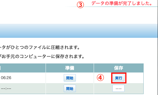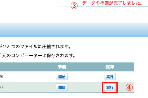 圧縮ファイルはデータ準備が完了してから24時間後に自動削除。
