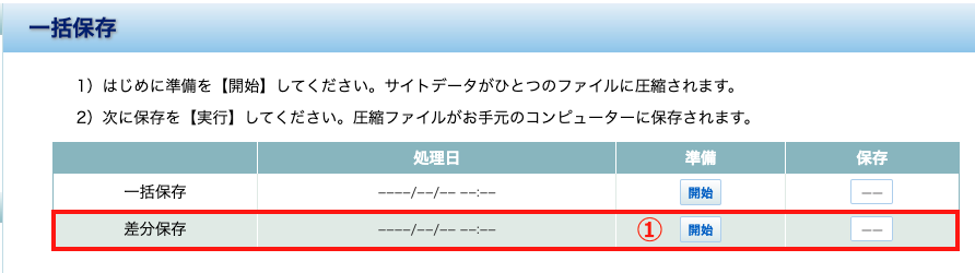 差分保存は、前回の保存から更新されたサイトデータのみを圧縮して保存。
