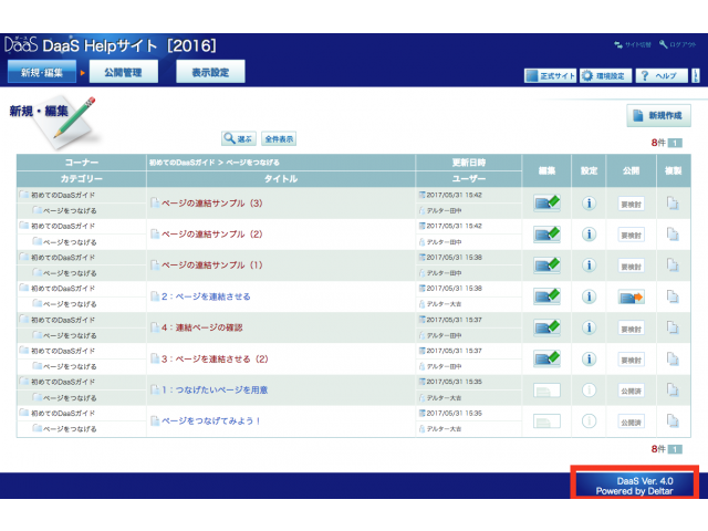 DaaSのバージョンは、コンテンツマネージャーの各ページ、画面一番下のフッタ部分に記載されています。