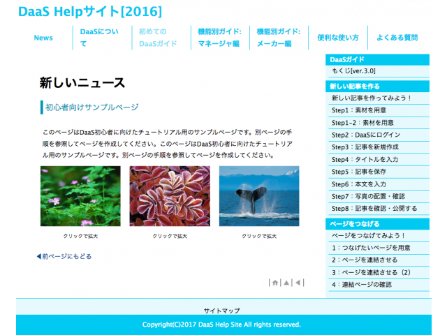 これは「DaaSヘルプサイト」で作成した記事のサンプル画面です。