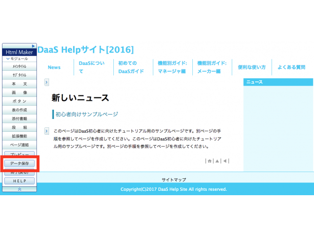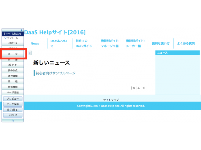 画面左側の「Html Maker」メニューから【本文】ボタンをクリックします。