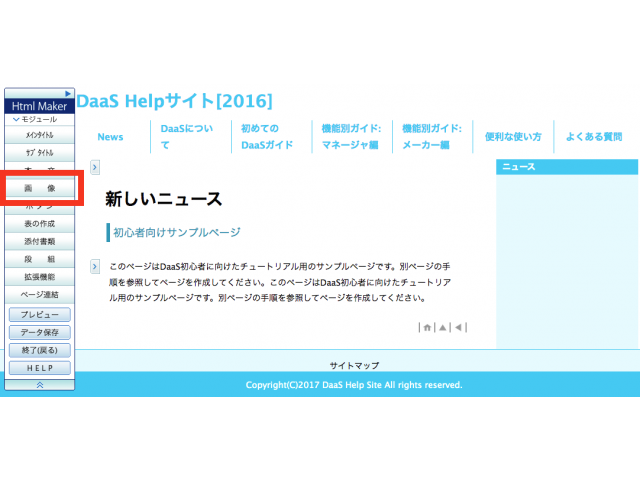 画面左側の「Html Maker」メニューから【画像】ボタンをクリックします。