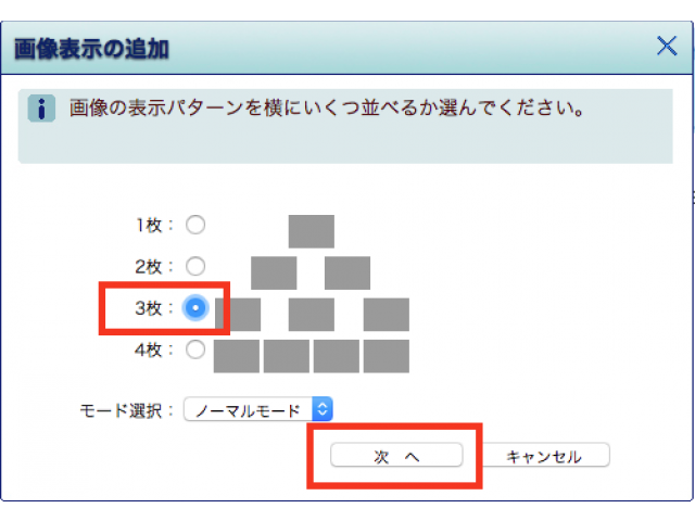 「画像表示の追加」ウィンドウが表示されます。