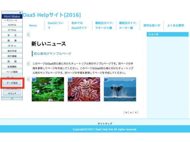 保存が出来たら、画面左側の「Html Maker」メニューから【プレビュー】ボタンをクリックします。