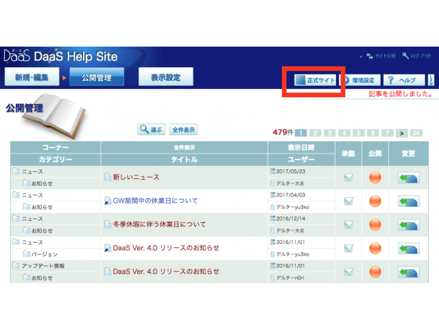 コンテンツマネージャーの「記事の作成・編集」画面に戻ります。