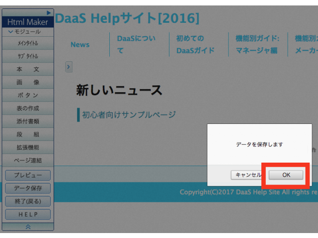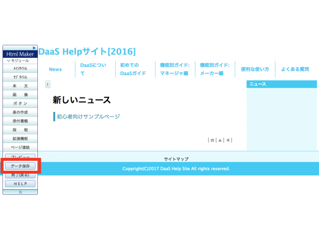 画面左側の「Html Maker」メニューから【データ保存】ボタンをクリックします。