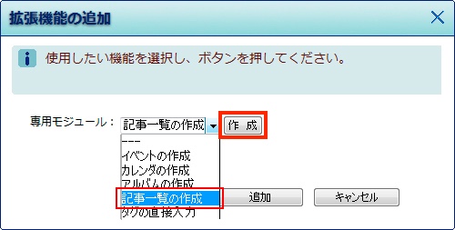 プルダウンメニューで「記事一覧の作成」を選択して【作成】ボタンをクリックします。